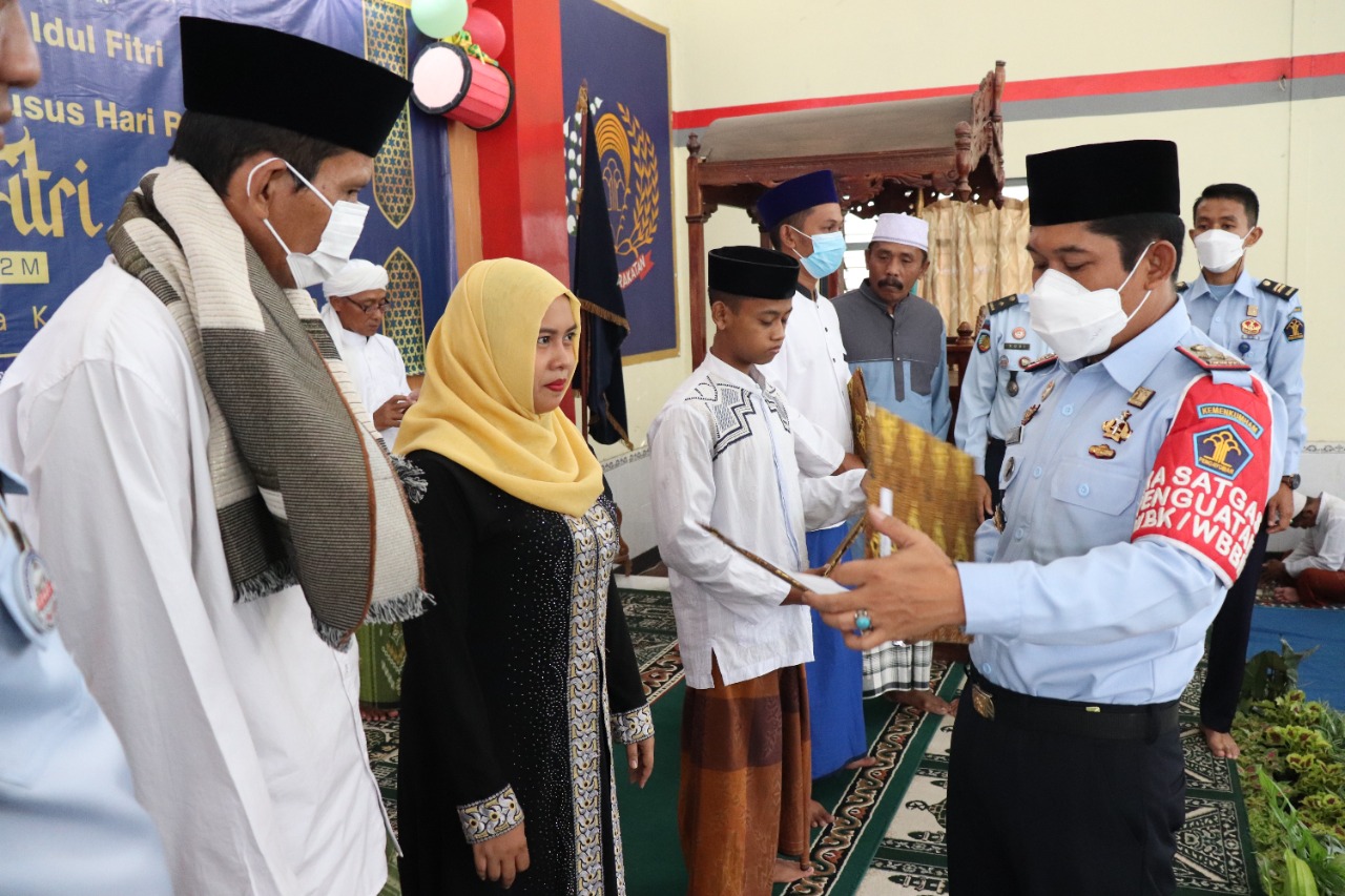 Penyerahan Remisi Khusus Idul Fitri diserahkan secara langsung oleh Kepala Rutan Kelas IIB Kraksaan, Bambang Irawan, secara simbolis kepada Perwakilan WBP yang menerima remisi setelah pelaksanaan salat ied.