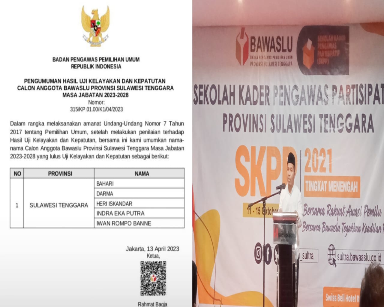 Mandalapos.co.id, Sulawesi Tenggara – Badan Pengawas Pemilu Republik Indonesia (Bawaslu RI) mengumumkan Hasil Uji Kelayakan dan Kepatutan Calon Anggota Bawaslu Provinsi Sulawesi Tenggara (Sultra) masa jabatan 2023-2028, Jakarta 13 April 2023.