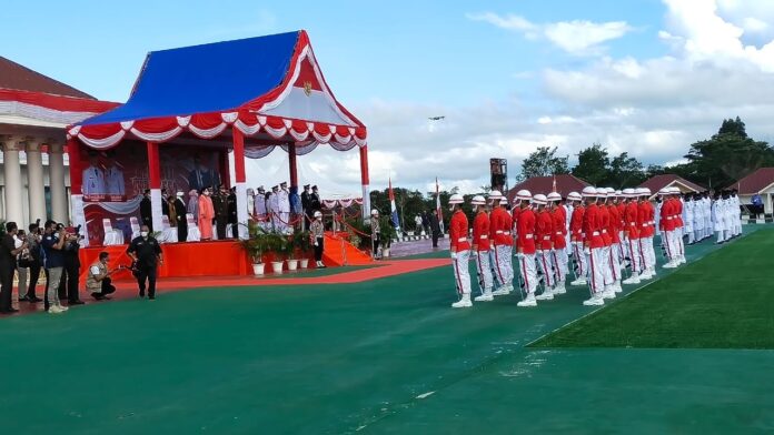 Paskibraka Kabupaten Natuna saat bertugas mengibarkan bendera merah putih saat upacara Hut ke-76 Kemerdekaan RI, Selasa (17/8) (Foto: Ist)
