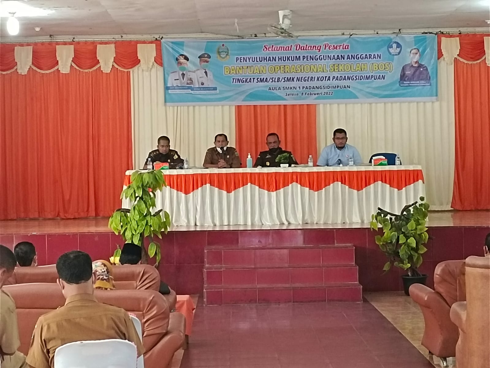 “Kita siap melakukan upaya pendampingan hukum (terkait pengelolaan dana BOS) kepada para kepala sekolah yang ada di Kota Padangsidimpuan,” ungkap Kajari disela penyuluhan hukum (Penkum) ke para Kepsek tingkat SMA/MK di Gedung Aula SMK Negeri 1 Padangsidimpuan di Jalan Sutan Soripada Mulia, Selasa (8/2/2022) pagi.