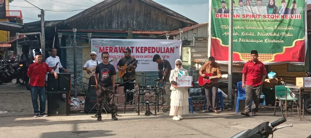 Mandalapos.co.id, Anambas — Spanduk bertuliskan “Merawat Kepedulian” Berbagi Tawa di Hari Raya untuk Anak Yatim, terpampang di Tugu Buak Jalan Hang Tuah Tarempa, Kabupaten Kepulauan Anambas, Jumat (7/4/2023).