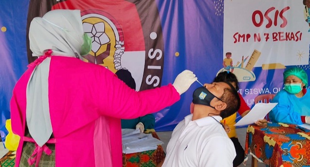 Kepala sekolah SMPN 7 Kota Bekasi, Sukamto, menjelaskan pemeriksaan antigen dilakukan terhadap 59 orang guru dan pegawai serta 30 Siswa.