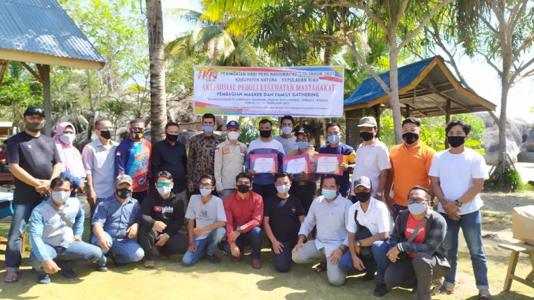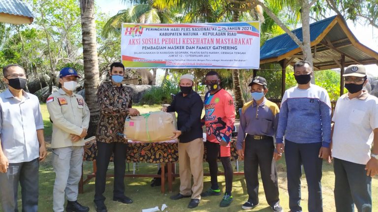 Mandalapos.co.id, Natuna- Dalam rangka memperingati Hari Pers Nasional (HPN) ke 75 tahun 2021, sejumlah Insan Pers di Kabupaten Natuna, Provinsi Kepulauan Riau (Kepri), melaksanakan pembagian ribuan masker secara gratis kepada masyarakat di Kecamatan Bunguran Selatan (Bungsel).
