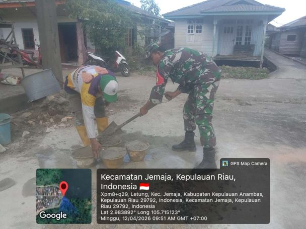 Anambas, Mandalapos.co.id – Babinsa Koramil 04/Letung, Kodim 0318/Natuna, Koptu Fian Hendratmo melaksanakan kegiatan komunikasi sosial (Komsos) dengan membantu warga yang sedang membangun rumah di Desa Batu Berapit, Kecamatan Jemaja, Kabupaten Kepulauan Anambas, Minggu (12/4/2026).