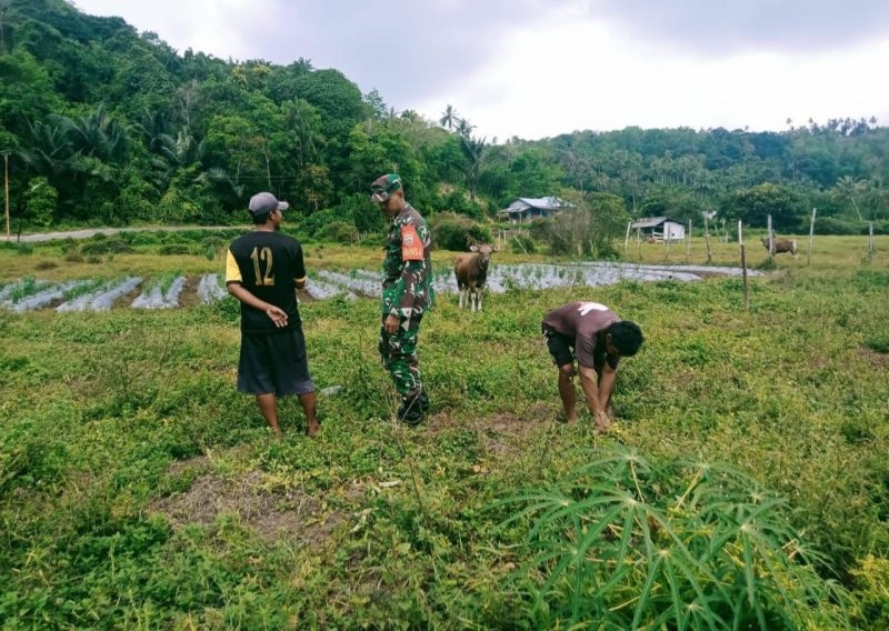 Dalam kegiatan tersebut, Babinsa berkunjung ke lahan pertanian milik Mulyadi, seorang petani cabai, dan Asep yang merupakan peternak sapi di desa setempat.