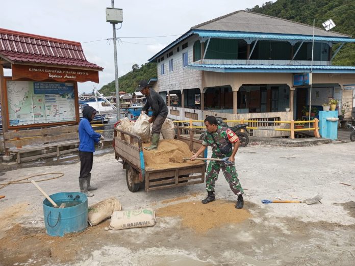 Dalam kegiatan tersebut, Serma Edi Sucipto membantu warga setempat, Bahtiar, menurunkan pasir dari atas kendaraan tosa. Pasir tersebut digunakan untuk keperluan perbaikan jalan desa yang mengalami kerusakan.