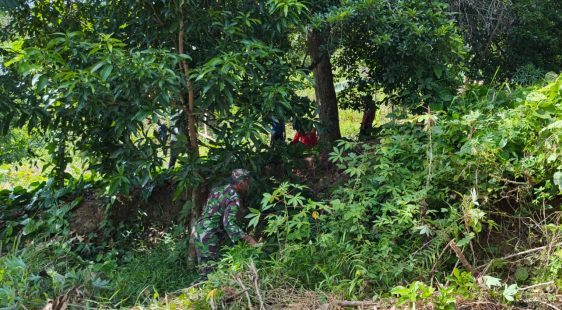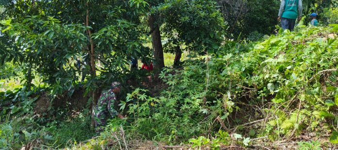 Dalam kesempatan itu, Babinsa bersama perangkat desa melakukan pembersihan lahan yang direncanakan akan digunakan untuk pembangunan fasilitas yang bermanfaat bagi masyarakat. Lahan tersebut ke depan juga akan dilakukan pematangan menggunakan alat berat serta proses pengukuran.