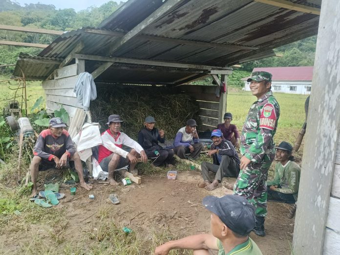 Anambas, mandalapos.co.id – Babinsa Koramil 04/Letung, Sertu Olih Solih melaksanakan monitoring wilayah sekaligus komunikasi sosial (Komsos) bersama Ketua Kelompok Tani (Poktan) Mekar Asih, Liber Purba, serta warga Bukit Padi, Kabupaten Kepulauan Anambas, Minggu (28/12/2025).