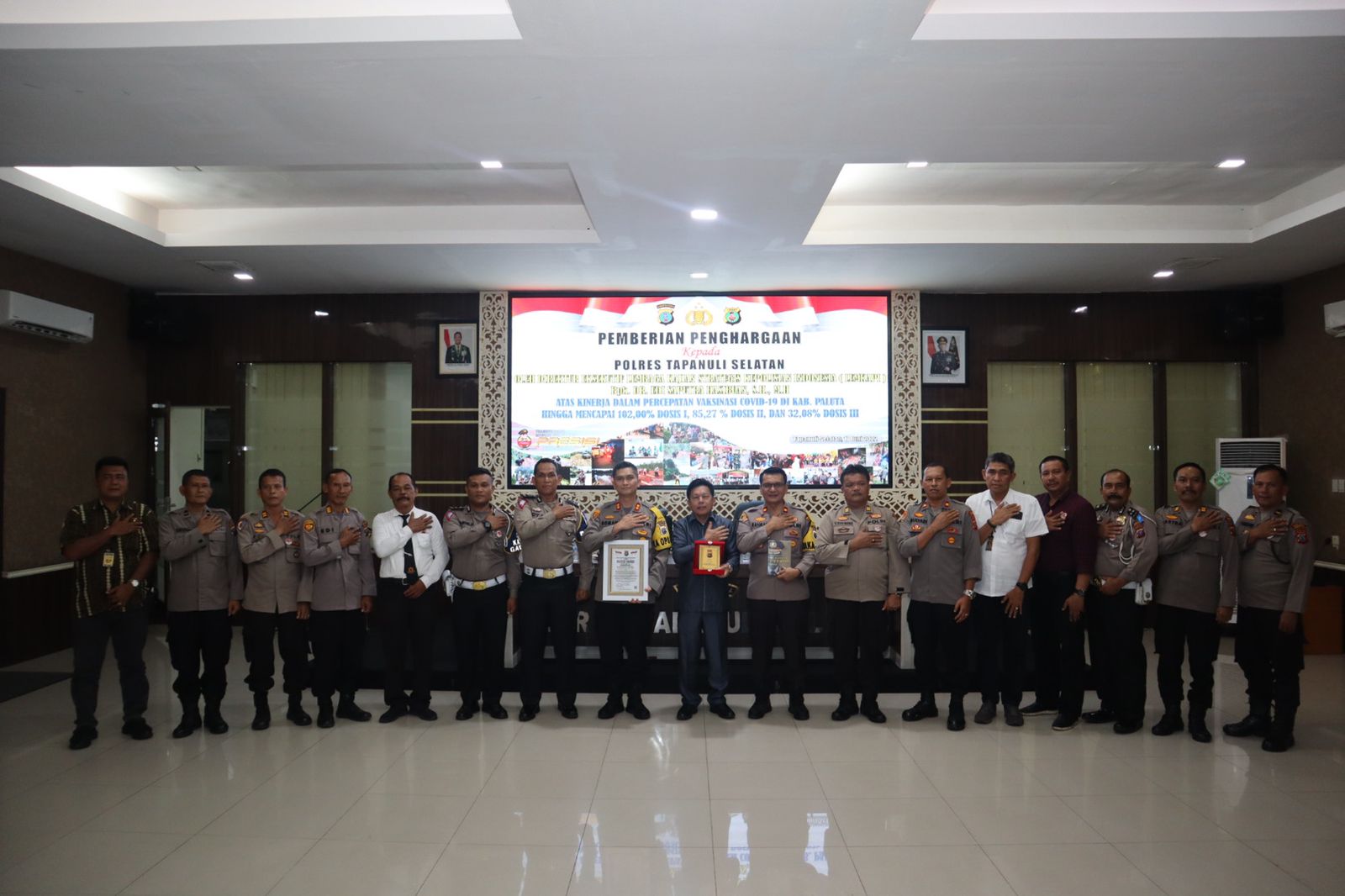 Mandalapos.co.id, Tapsel — Polres Tapanuli Selatan (Tapsel), meraih penghargaan dari Lembaga Kajian Strategis Kepolisian (Lemkapi) atas capaian vaksinasi 100 persen di Kabupaten Padang Lawas Utara (Paluta), Jumat (17/6/2022) sore.
