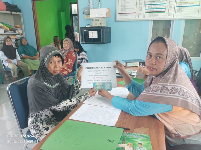 “Penyaluran BLT tahun 2026 memang sedikit terlambat karena Dana Desa baru masuk ke rekening kas desa. Namun hari ini sudah bisa kita salurkan kepada masyarakat,” ujarnya.