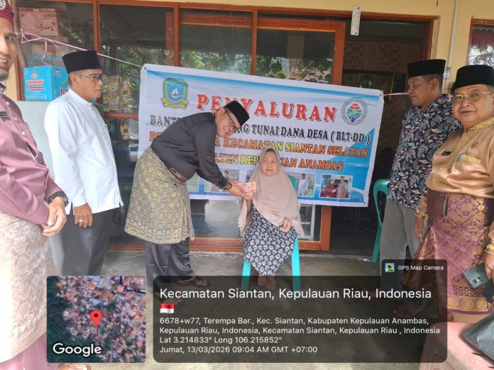 ANAMBAS, mandalapos.co.id – Pemerintah Desa Telaga, Kecamatan Siantan Selatan, menyalurkan Bantuan Langsung Tunai (BLT) Dana Desa kepada warga penerima manfaat, Jumat (13/3/2026). Bantuan tersebut diharapkan dapat meringankan beban masyarakat menjelang lebaran Idul Fitri.