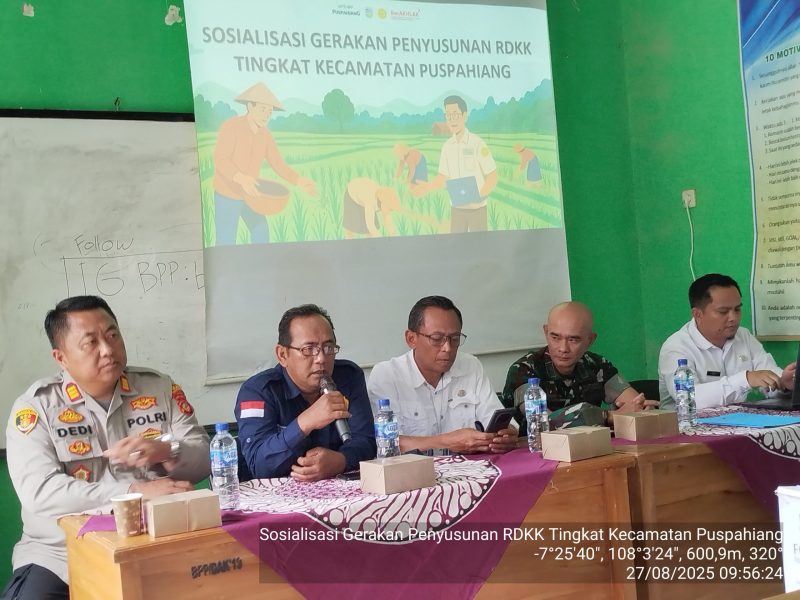 Tasikmalaya, mandalapos.co.id – Balai Penyuluhan Pertanian (BPP) Kecamatan Puspahiang menggelar Sosialisasi Gerakan Penyusunan Rencana Definitif Kebutuhan Kelompok (RDKK) Pupuk Bersubsidi Tahun 2026 pada Rabu, 27 Agustus 2026, bertempat di Aula BPP Kecamatan Puspahiang. Kegiatan ini menjadi langkah awal penting untuk memastikan penyaluran pupuk bersubsidi di wilayah Puspahiang berjalan lebih transparan, tepat jumlah, tepat waktu, dan tepat sasaran.