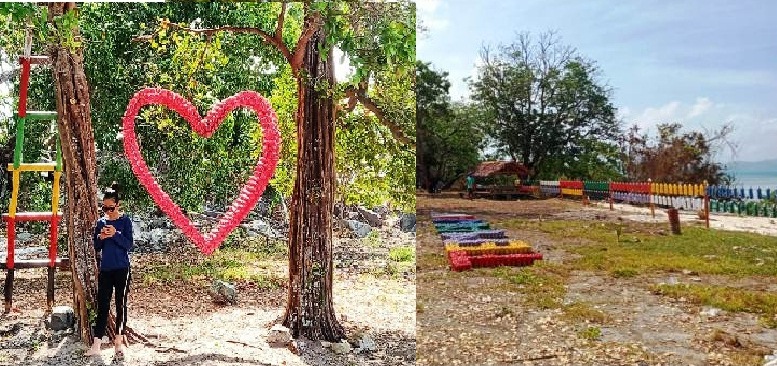 Meski minim modal, jajaran pengurus Bumdes Tujuh Kunci tak patah arang untuk mempercantik calon destinasi wisata unggulan Desa Batu Belah itu. Terlihat, gantungan botol bekas yang di cat berwarna-warni memagari pintu masuk pulau temawan kecil. Begitupula wahana-wahana yang terbuat dari botol bekas dengan berbagai bentuk menarik untuk berfoto.