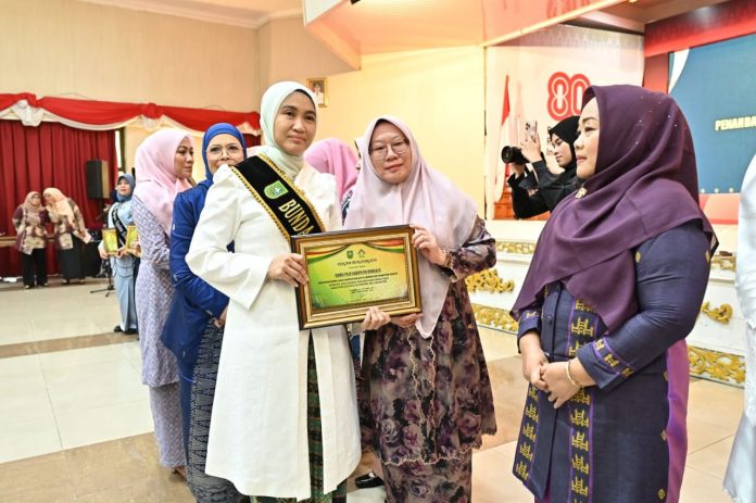 Penghargaan tersebut diserahkan langsung oleh Bunda PAUD Provinsi Riau Henny Sasmita Wahid, dalam kegiatan Apresiasi Bunda PAUD Berprestasi yang diselenggarakan oleh Bunda PAUD Provinsi Riau, bertempat di Balai Serindit, Gedung Daerah Gubernuran Provinsi Riau, Jumat (26/9/2025).