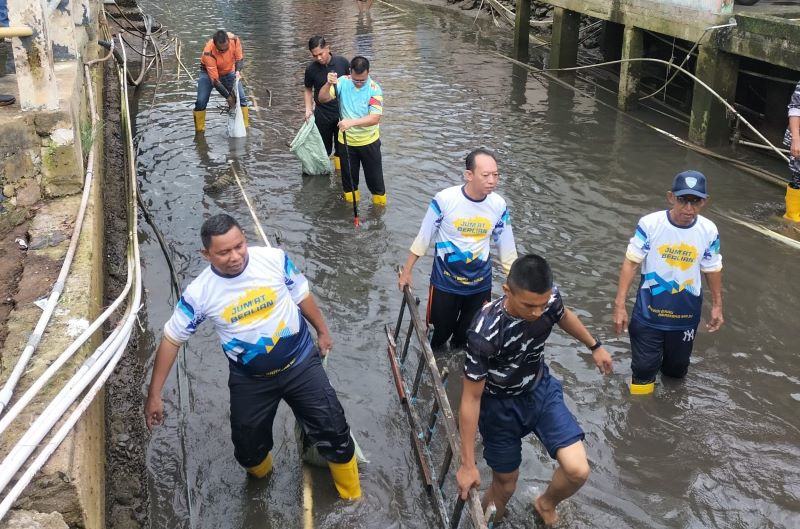 Kegiatan gotong royong tersebut turut dihadiri oleh unsur TNI, Polri, BPBD, Ketua RW dan RT, serta masyarakat setempat yang berpartisipasi aktif dalam membersihkan lingkungan sekitar.