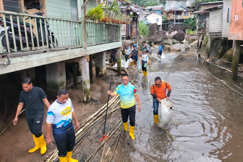 Kegiatan gotong royong tersebut turut dihadiri oleh unsur TNI, Polri, BPBD, Ketua RW dan RT, serta masyarakat setempat yang berpartisipasi aktif dalam membersihkan lingkungan sekitar.