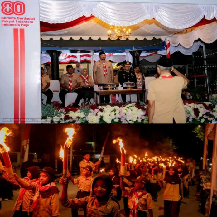 Buton Tengah, Mandalapos.co.id — Dalam rangka menyambut peringatan Hari Ulang Tahun (HUT) Kemerdekaan ke-80 Kemerdekaan Republik Indonesia, Pemerintah Kabupaten Buton Tengah menggelar Upacara Taptu dan Pawai Obor berlangsung di Halaman Rumah Jabatan Bupati, Sabtu malam (16/8/2025).