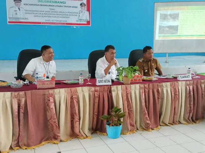 Mandalapos.co.id, Natuna – Bupati Natuna, Wan Siswandi, resmi membuka Musrenbang Kecamatan Bunguran Utara Tahun 2022, Senin (7/2) di aula kecamatan.
