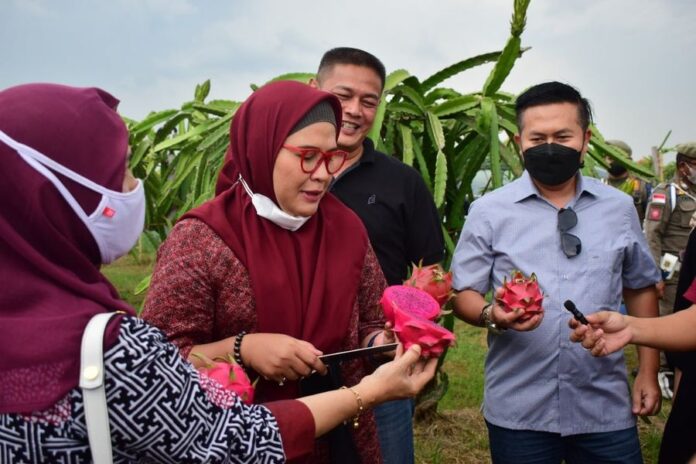 Kekaguman Bupati Indramayu Nina Agustina semakin menjadi saat mencicipi buah naga yang dipetik langsung dari tangkai pohonnya, didampingi Pimpinan Cabang BJB Indramayu Asep Wahyu Ismail, Kepala Satpol-PP Damkar Indramayu Teguh Budiarso dan Camat Indramayu Indra Mulyana.