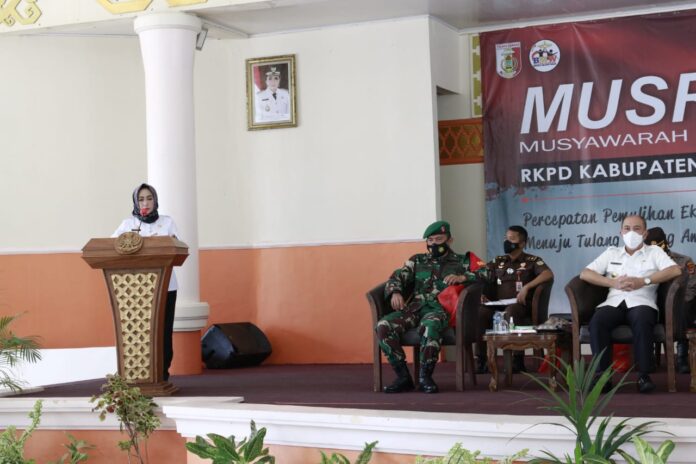 mandalapos.co.id, Tuba– Bupati Tulang Bawang, Winarti, Membuka secara resmi Musyawarah Rencana Pembangunan ( Musrenbang ) RKPD Kabupaten Tulang Bawang 2022 dengan Tema Percepatan Pemulihan Ekonomi dan Kesehatan serta Peningkatan Kualitas SDM Menuju Tulang Bawang Aman, Mandiri dan Sejahtera di gedung Serba Guna Menggala, Rabu 10 Maret 2021.