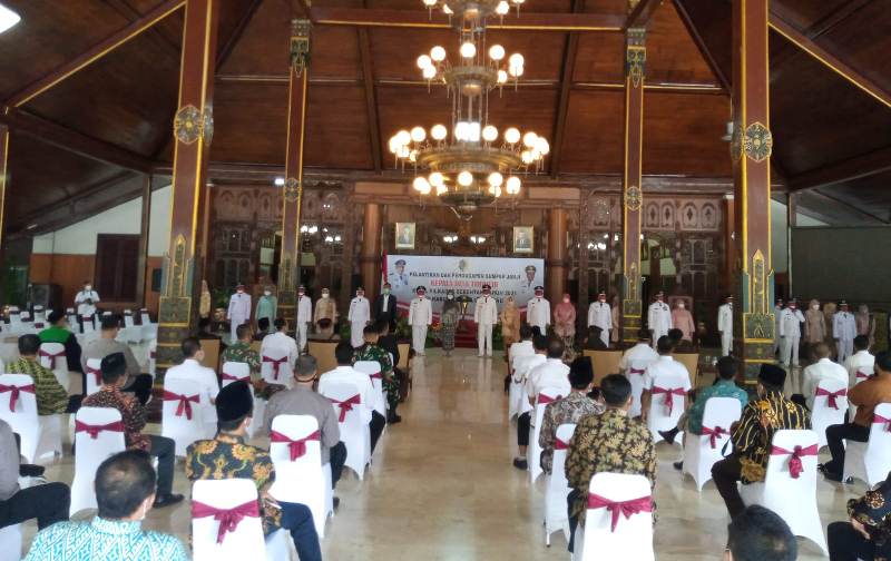 Dalam sambutan dan arahannya, Bupati Tulungagung Drs. Maryoto Birowo, memberikan ucapan selamat kepada para kades yang dilantik.