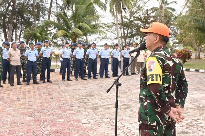 Natuna, mandalapos.co.id — Lanud Raden Sadjad Natuna menggelar ceramah Safety Lambangja di halaman Masjid Mina, Kabupaten Natuna, Provinsi Kepulauan Riau, Rabu (11/2/2026). Kegiatan ini dilaksanakan setelah apel pagi dan disampaikan Ps. Kasi Base Ops Lanud RSA, Kapten Lek Basori.