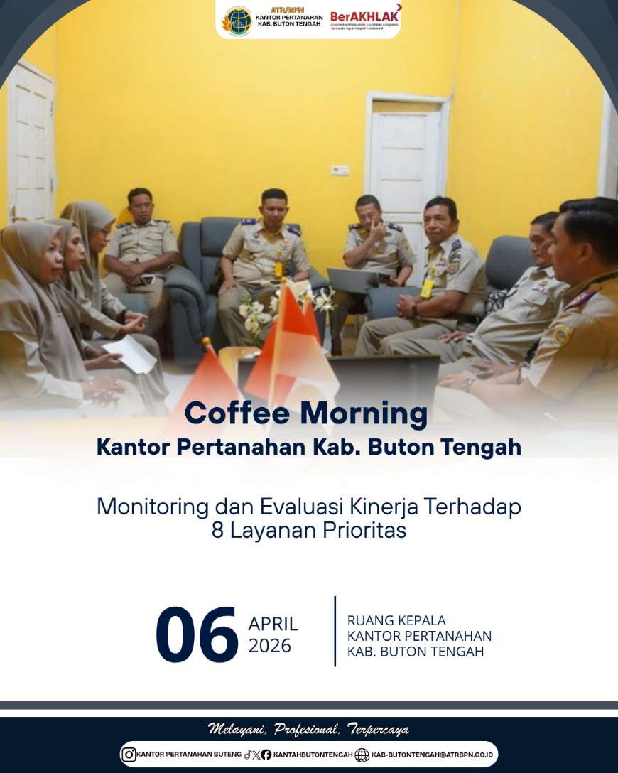 Buton Tengah, Mandalapos.co.id – Dalam upaya meningkatkan kualitas kinerja dan pelayanan publik, Kantor Pertanahan Kabupaten Buton Tengah menggelar kegiatan coffee morning pada Senin (6/4/2026).