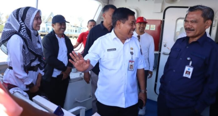 Seusai mendarat di Lanud Raden Sadjad, Sekjen Kementerian Dalam Negeri, Suhajar Diantoro bersama beberapa pejabat Pemprov Kepri, di di dampingi Sekda Natuna dan beberapa Kepala OPD Kabupaten Natuna langsung bergerak menuju Pulau Serasan menggunakan kapal cepat milik Pemda Natuna MV Indra Perkasa 159. ***(ADVERTORIAL DPRD NATUNA)