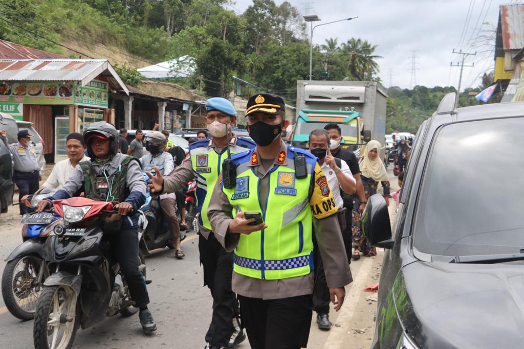 Di sela pemantauan, Kapolres juga terlibat langsung dalam pengaturan arus lalu lintas kendaraan di seputaran Aek Sijorni. Tidak hanya itu, Kapolres juga melaporkan secara live (langsung) situasi terkini arus lalu lintas di seputaran Objek Wisata Aek Sijorni. Di mana, situasi arus lalu lintas terpantau, padat, aman, dan lancar.