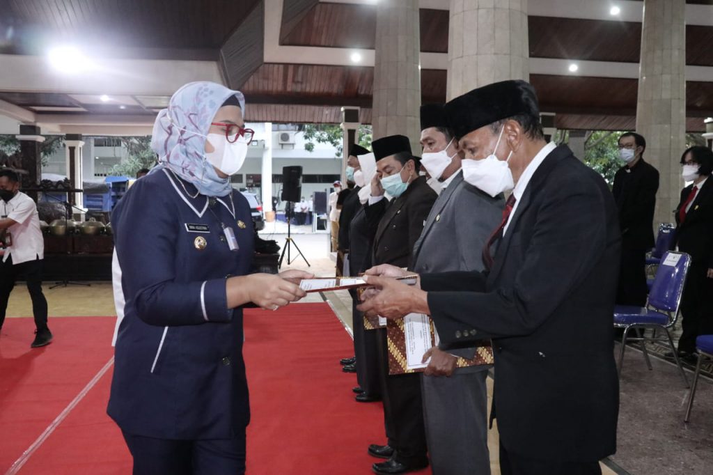mandalapos.co.id, Indramayu – Bupati Indramayu Nina Agustina Da’i Bachtiar kembali melantik dan mengambil sumpah Pejabat Pimpinan Tinggi Pratama, Pejabat Administrator, Pejabat Pengawas, dan Pejabat Fungsional di lingkungan Pemerintah Kabupaten Indramayu, Prosesi pelantikan bertempat di Pendopo Indramayu, Rabu (29/12/2021).