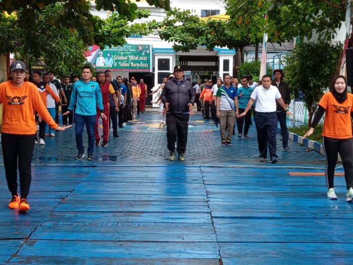 Mandalapos.co.id, Anambas — Mengawali Tahun 2023, kegiatan Sabtu Bersih Kelurahan Tarempa, Kepulauan Anambas, dibarengi dengan kegiatan senam bersama dan coffee morning di Lapangan Lanal Tarempa, Sabtu (7/1/2023) pagi.