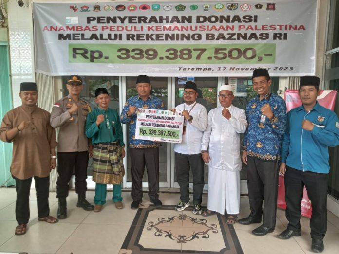 Mandalapos.co.id, Anambas — Bupati Kepulauan Anambas bersama BAZNAS Kepulauan Anambas, menyerahkan hasil penggalangan donasi Peduli Kemanusiaan Rakyat Palestina kepada Kepala Cabang Bank Syariah Indonesia (BSI), Jumat (17/11) di depan kantor BSI Cabang Anambas, Kecamatan Siantan.