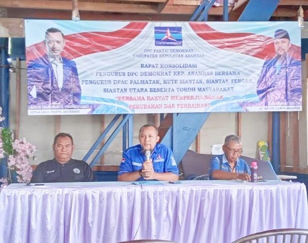 Mandalapos.co.id, Anambas — Pengurus DPC Demokrat Kabupaten Kepulauan Anambas menggelar rapat konsolidasi dengan pengurus DPAC Demokrat Kecamatan Palmatak, Kute Siantan, Siantan Tengah, Siantan Utara, beserta tokoh masyarakat, Sabtu (12/11) di rumah makan melayu Yusian, Desa Piabung, Kecamatan Palmatak.