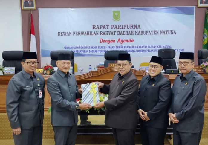 Pada kesempatan ini, seluruh fraksi di DPRD Natuna menyampaikan apresiasi kepada pemerintah Kabupaten Natuna atas kinerjanya yang dinilai baik dalam pengelolaan keuangan dan pelaksanaan APBD 2023.
