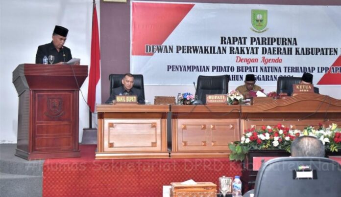 Mandalapos.co.id, Natuna – Dewan Perwakilan Rakyat Daerah (DPRD) Kabupaten Natuna, menggelar rapat paripurna dengan agenda penyampaian pidato Bupati Natuna terhadap Laporan Pertanggungjawaban Penaggunaan (LPP) APBD tahun anggaran 2021, di ruang rapat paripurna DPRD Kabupaten Natuna, Kecamatan Bunguran Timur, Selasa, 28 Juni 2022.
