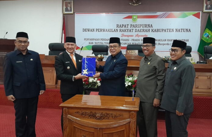 Mandalapos.co.id, Natuna — Setelah melalui proses pembahasan internal laporan Pansus hingga tingkat rapat Fraksi. Akhirnya ke lima Fraksi Dewan Perwakilan Rakyat Daerah (DPRD) Natuna menyatakan menerima dan menyetujui Rancangan peraturan Daerah ditetapkan menjadi Peraturan daerah Kabupaten Natuna.