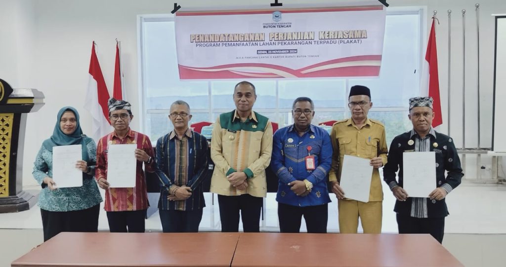 Mandalapos.co.id, Buton Tengah — Tiga Organisasi Perangkat Daerah (OPD) dan Tim Penggerak Pemberdayaan Kesejahteraan Keluarga (PKK) lakukan pendatangan Perjanjian Kerjasama (PKS) dalam rangka optimalisasi percepatan program PLAKAT (Pemanfaatan Lahan Pekarangan Terpadu).