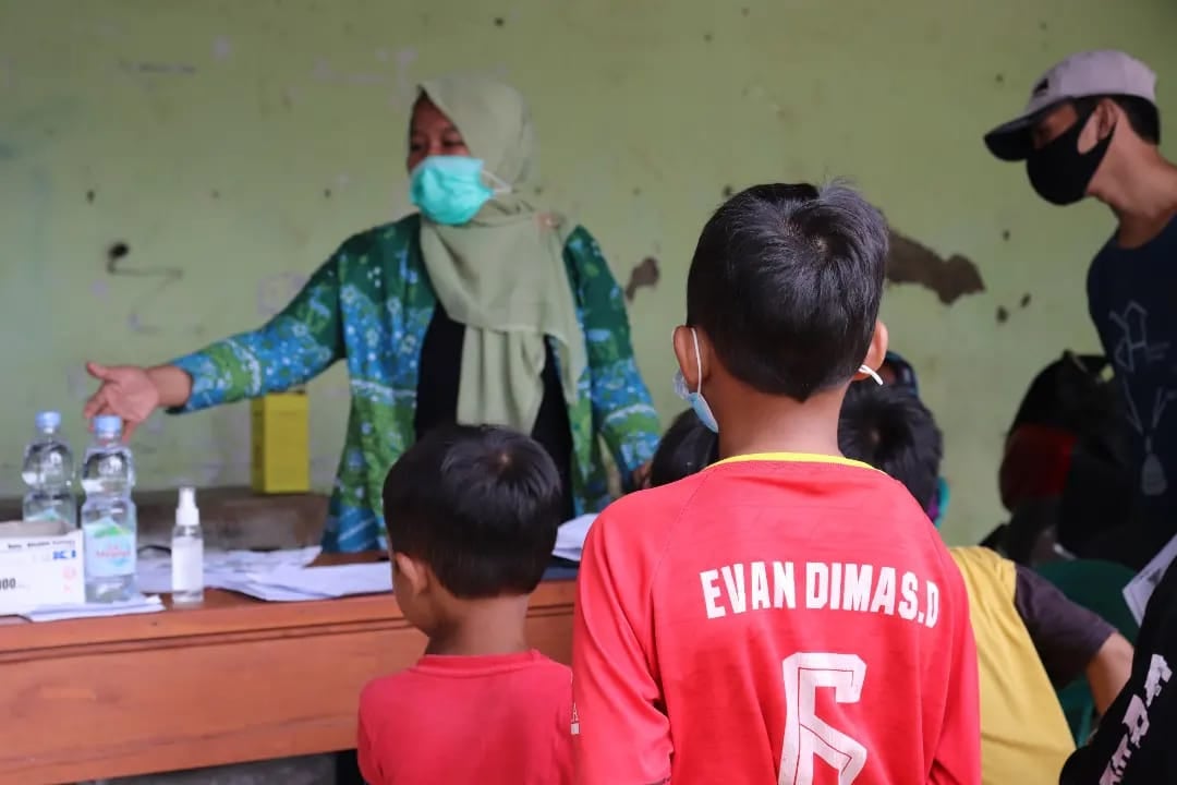 Terlihat, antusiasme anak-anak cukup besar untuk mengikuti vaksinasi. Tidak tanggung-tanggung, bahkan “Evan Dimas” pun turut antre bersama calon penerima vaksin lainnya.
