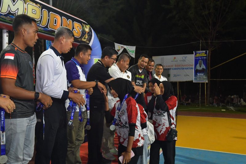 Penyerahan hadiah dilakukan oleh Sekretaris Daerah Kabupaten Natuna, Boy Wijanarko Varianto, S.E., disaksikan Forkopimda dan masyarakat yang memenuhi arena Voli Pantai Piwang.