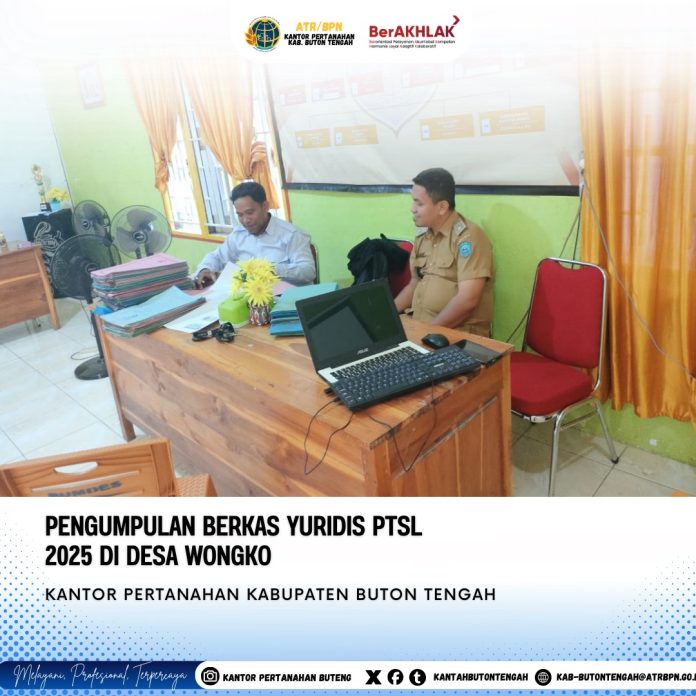 Buton Tengah, Mandalapos.co.id – Kantor Pertanahan Kabupaten Buton Tengah (Buteng) turun langsung ke Desa Wongko, Kecamatan Lakudo, untuk melaksanakan kegiatan Pengumpulan Data Yuridis (Puldadis) dalam rangka program Pendaftaran Tanah Sistematis Lengkap (PTSL) tahun 2025, Senin, 15 September 2025.