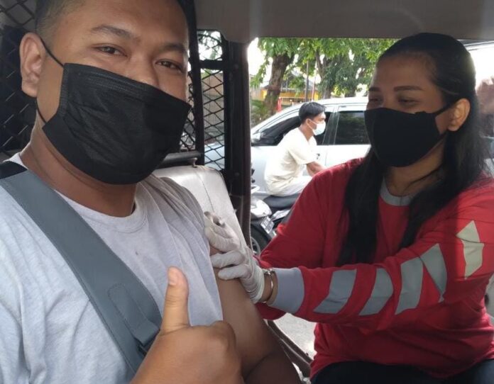 Probolinggo – Upaya mempercepat proses vaksinasi terus dilakukan oleh Polres Probolinggo Kota. Kali ini, vaksinasi digelar secara keliling di Pasar Sabtu Minggu (Tugu) Alun – Alun Kota Probolinggo, Minggu (17/10/2021) pagi.