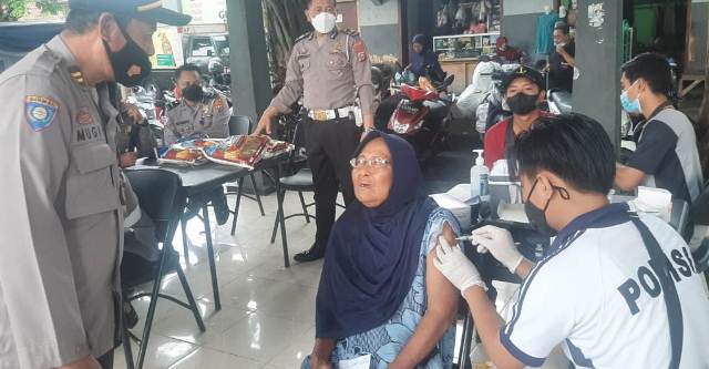 Seperti yang dilakukan pada Jumat (3/12), gerobak vaksin Polres Probolinggo Kota menyasar Pasar Randu Pangger di Jalan Serma Abdurrahman Kecamatan Mayangan.