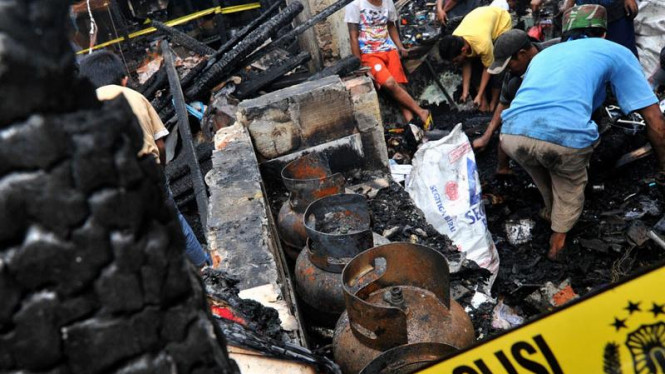 Dia mengungkapkan, petugas kebakaran mengalami kesulitan memadamkan api karena ratusan tabung gas silih berganti mengeluarkan ledakan. Penyebab kebakaran masih dalam proses penyidikan kepolisian.