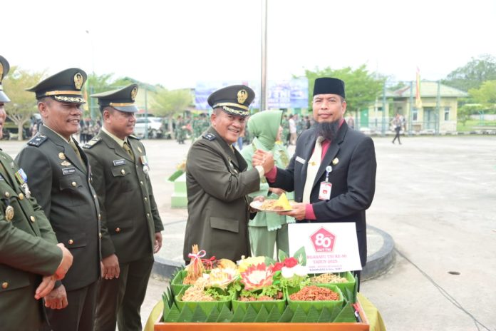 Bengkalis, mandalapos.co.id — Bupati Bengkalis diwakili Asisten Pemerintahan dan Kesejahteraan Rakyat Andris Wasono menghadiri upacara peringatan Hari Ulang Tahun (HUT) Tentara Nasional Indonesia (TNI) Ke-80 yang digelar di Lapangan Upacara Kodim 0303/Bengkalis, Minggu (5/10/2025).