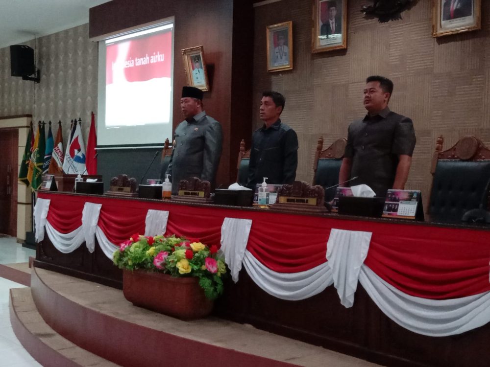 “Berdasarkan ketentuan Peraturan DPRD nomor 1 Tahun 2020 pasal 150 ayat 1, mengatakan bahwa rapat paripurna dinyatakan memenuhi kuorum apabila dihadiri lebih dari ½ anggota DPRD. Oleh karena itu sesuai tata tertib DPRD dengan ini rapat pripurna saya skors 1 menit,” ujar Syamsil Umri.