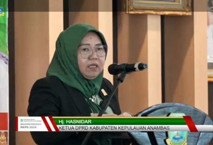 Mandalapos.co.id, Anambas — Ketua DPRD Anambas, Hasnidar, menyampaikan pokok-pokok pikiran DPRD dalam kegiatan Musyawarah Perencanaan Pembangunan Rencana Kerja Pemerintah Daerah (Musrenbang RKPD) Tahun 2024, Selasa (28/3/23) di Aula Prof M. Zen lantai III Kantor Bupati Anambas.