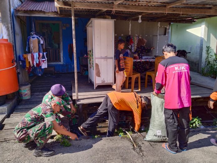 Mandalapos.co.id, Anambas – Anggota Koramil 02 Tarempa, Sertu Brandes, menghadiri dan mengikuti kegiatan kegiatan gotong royong Jumat bersih di wilayah Kelurahan Tarempa, Jumat (20/10).