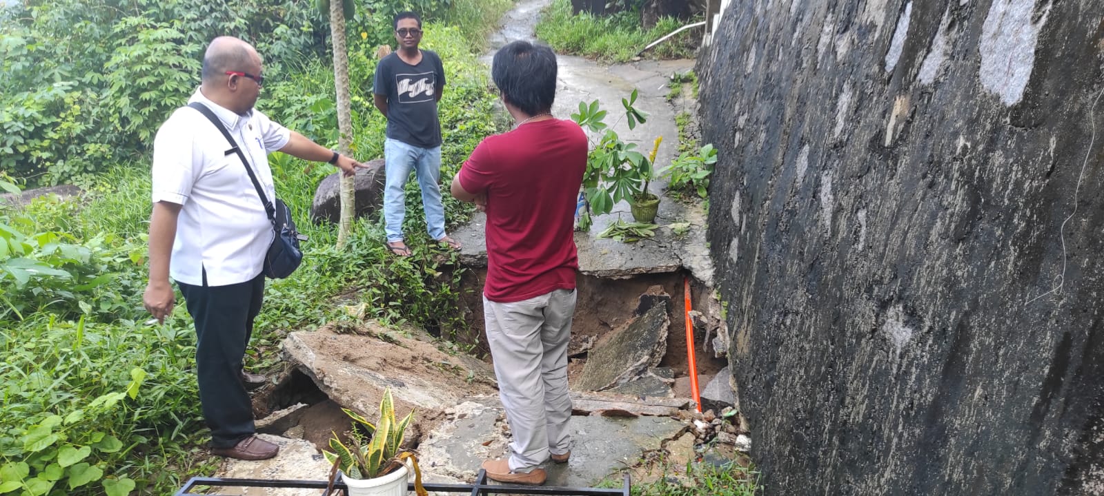 Amblasnya jalan semenisasi itu, diduga akibat erosi alias terkikisnya lapisan tanah oleh air hujan. Kini jalan tersebut tak bisa dilalui oleh masyarakat.