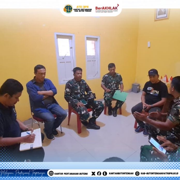 ​Buton Tengah, Mandalapos.co.id – Kantor Pertanahan Kabupaten Buton Tengah ( Kantah Buteng) Provinsi Sulawesi Tenggara, menerima kunjungan Tim Zidam (Zeni Daerah Militer) dari Komando Daerah Militer (Kodam) XIV/Hasanuddin Makassar. Kunjungan ini bertujuan utama untuk melakukan konsultasi teknis dan verifikasi lokasi (cek lokasi) dalam rangka percepatan pensertipikatan aset tanah Batalyon Tim Pertempuran (Yon TP) TNI yang berlokasi di Desa Waara, Kecamatan Lakudo, berlangsung di Kantor Kantah Buteng, Jumat (28/11/2025).