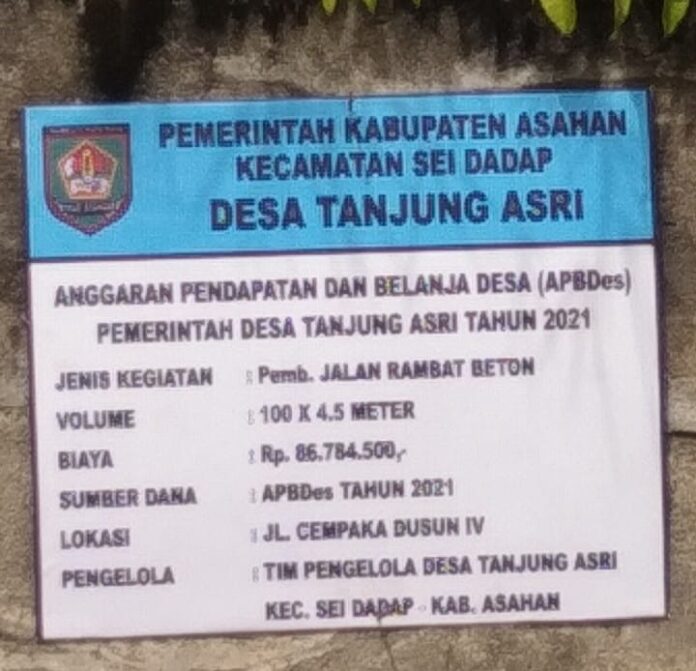 Bahrum menyebut, pada tanggal 30 Desember 2021 kemarin, tim Independent Hukum Indonesia (IHI) turun langsung memantau ke lokasi proyek yang menelan anggaran sebesar Rp86.784.500,- bersumber dari anggaran Dana Desa Tanjung Asri Tahun 2021 itu.